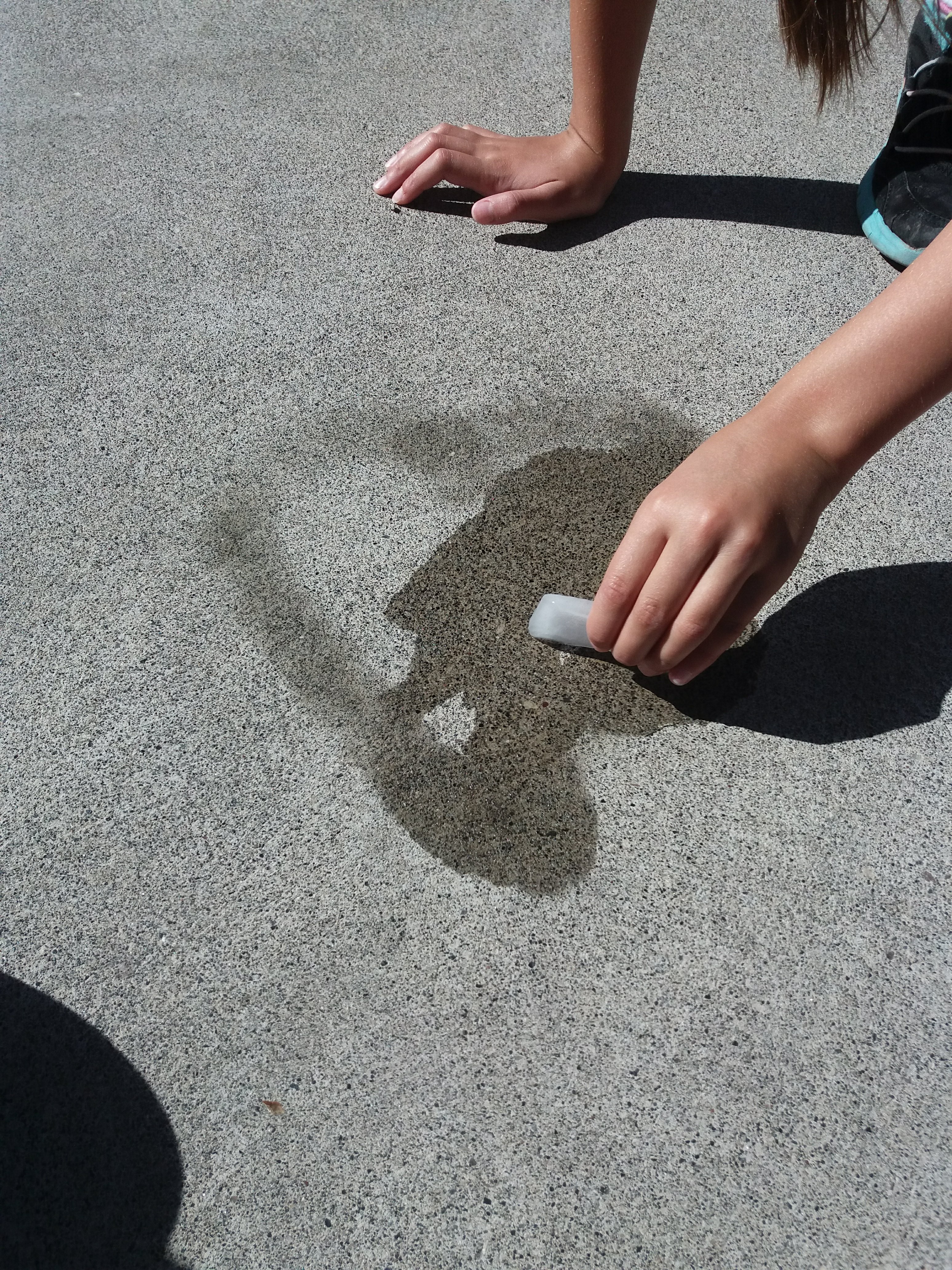 Cowgirl came up with a great idea yesterday. We were playing outside, drawing on the driveway with chalk, and she came outside with a cup full of ice. She says “I like to paint with ice” and handed out the cubes.